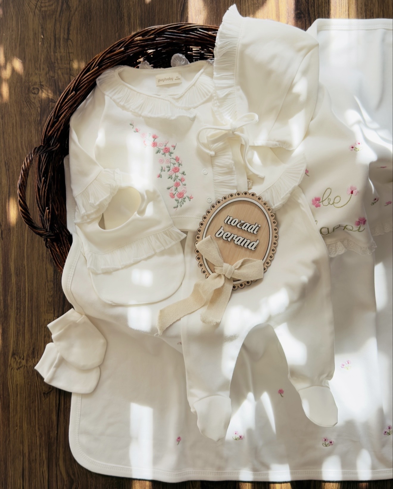 ست بیمارستانی نوزادی ترک لوکس و گلدوزی شده edababy