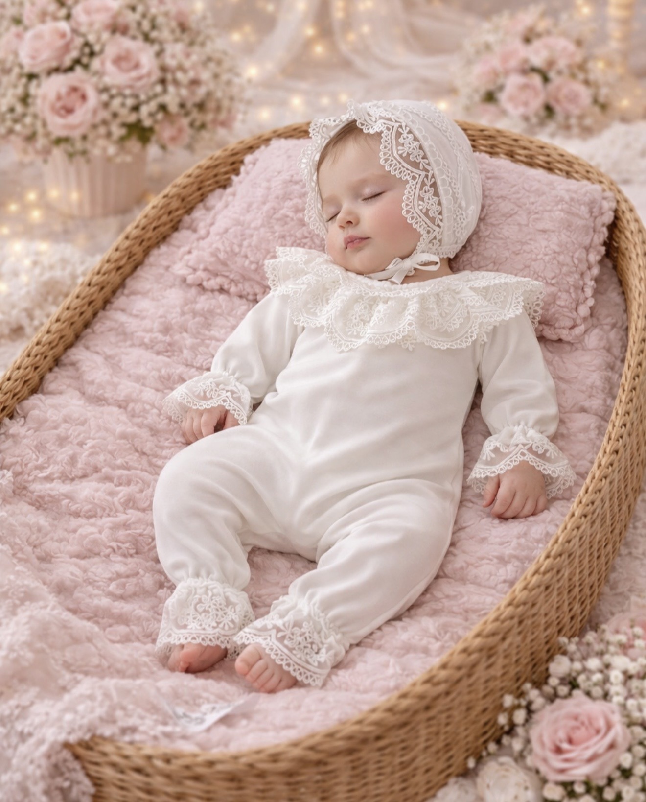 ست نوزادی ترک رامپر و گیره مو مجلسی
