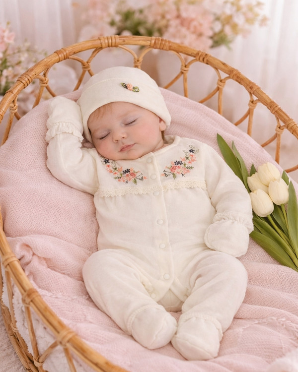ست نوزادی ترک ۳ تیکه لوکس گلدوزی