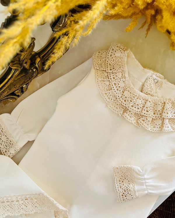 سرهمی و کلاه پرنسسی کرم، لطیف، سبک و خوشگل واسه فرشته کوچولوت 👼🏻💞✨