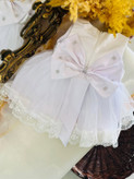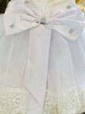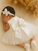 با طراحی خاص پشت و پاپیون بزرگ نگیندار. ترکیب تور سبک و لطیف با دوخت تمیز و جزییات درخشان، این لباس رو به انتخابی بینظیر برای خاصترین لحظهها تبدیل کرده😍💫
