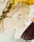 سرهمی مخمل نوزادی دخترانه ترک به همراه کلاه