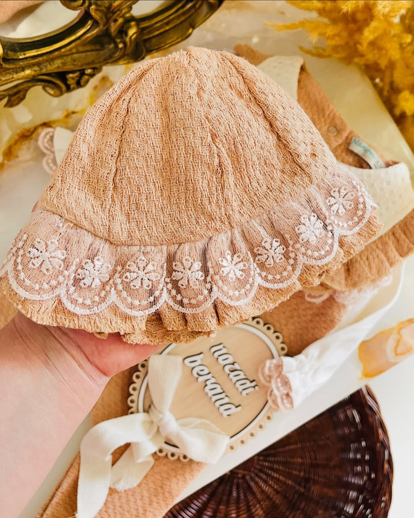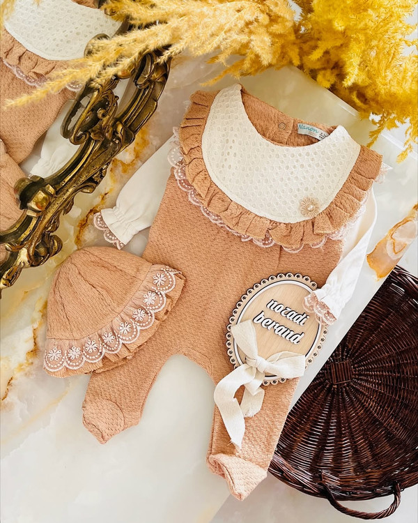 سرهمی نوزادی دخترانه ترک به همراه کلاه بامزش