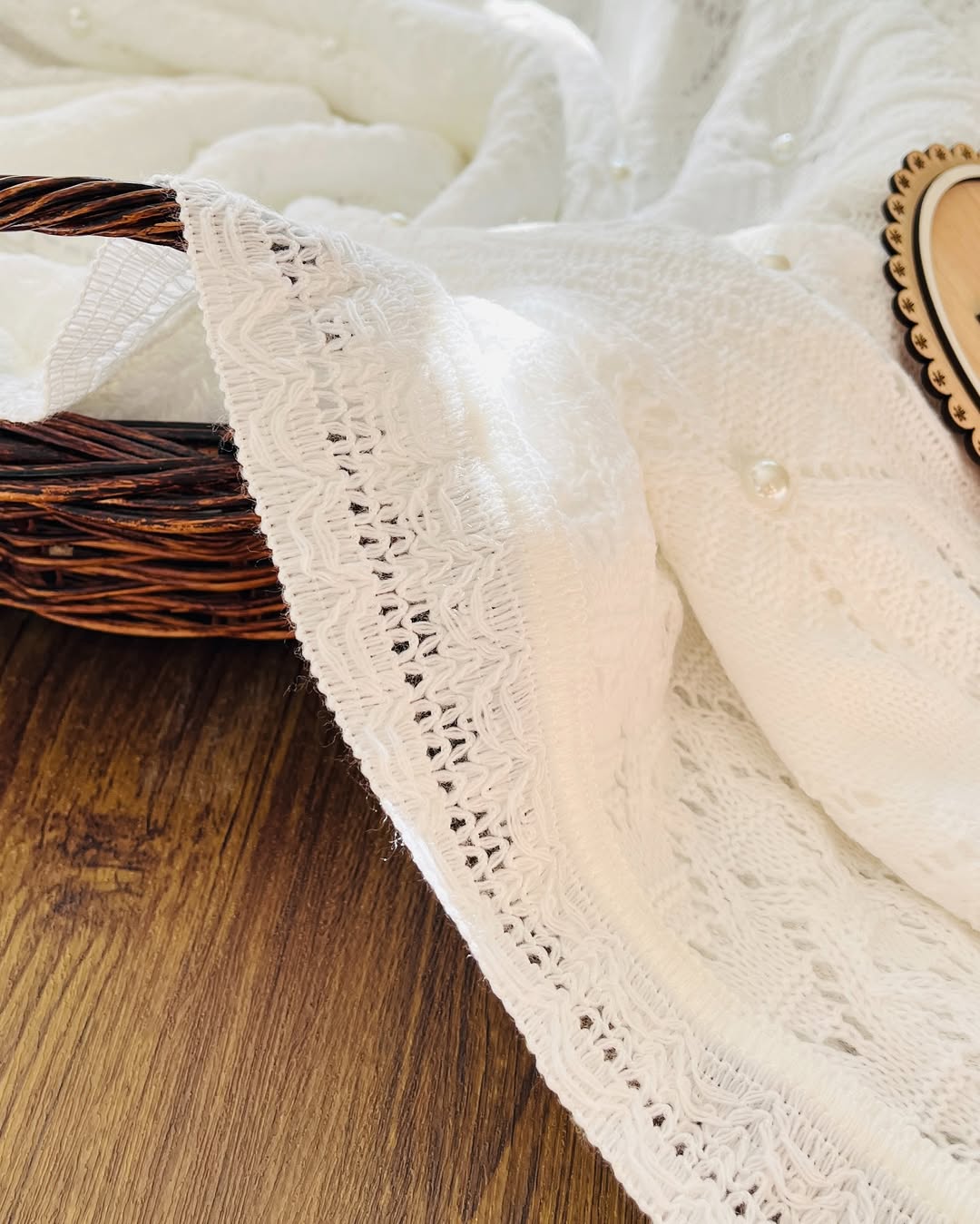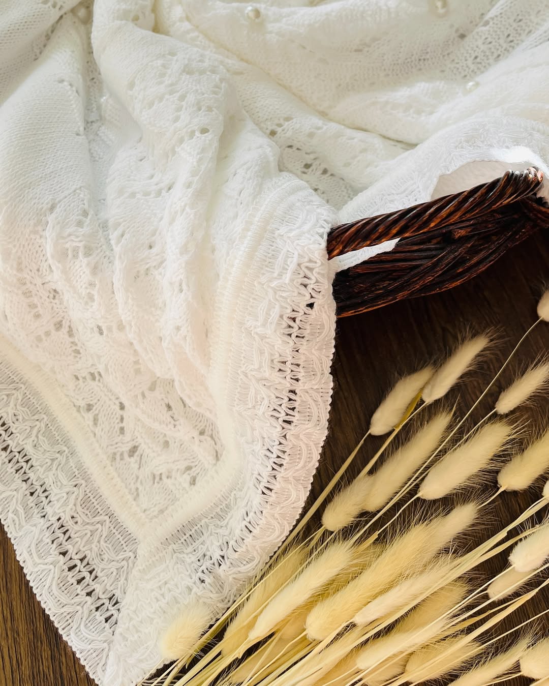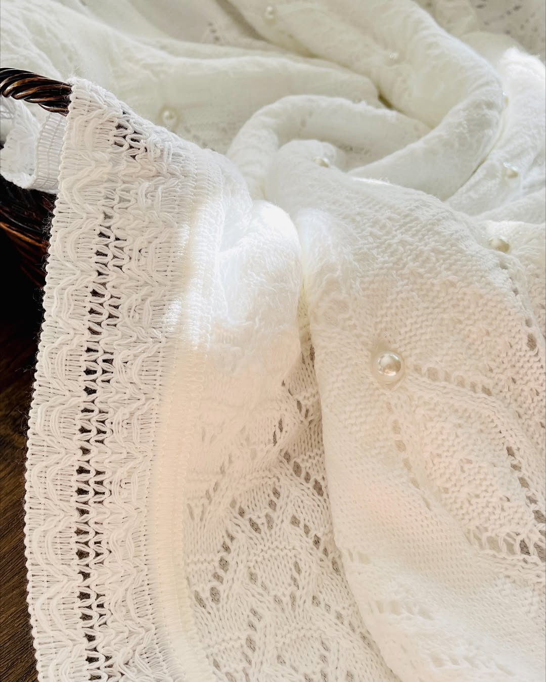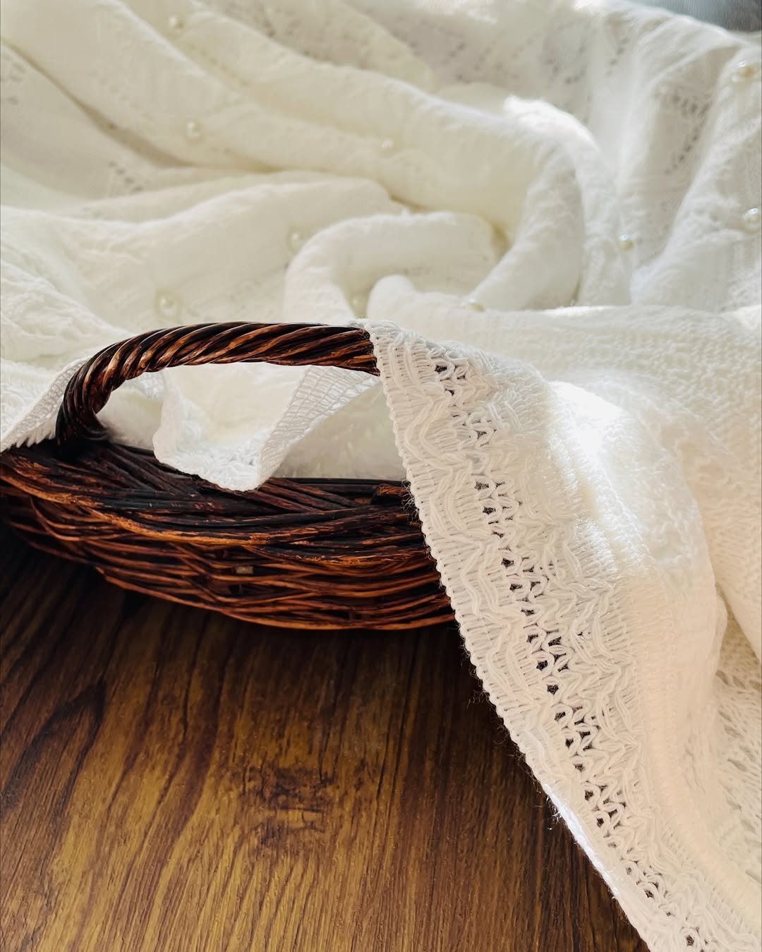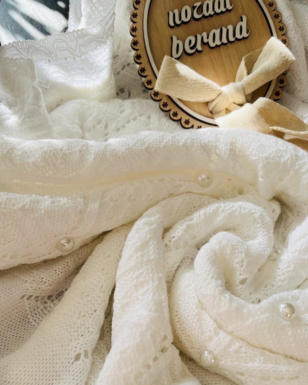 🔹 قسمت رویی بافت قلابدوزی داره که مروارید داخلش کار شده و ظاهرش رو خاص و شیک کرده ✨